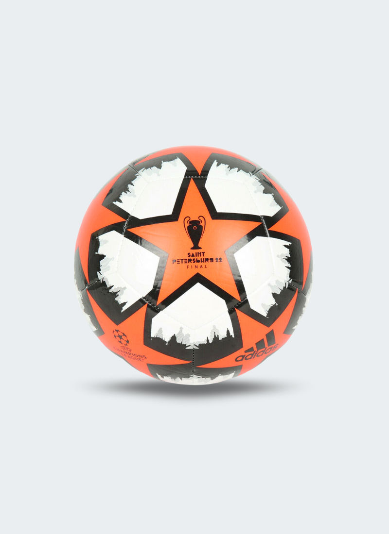 Adidas all weather UEFA Champions League Club Petersburg Soccer ball. Reflecting the official match ball's vibrant look, the colorful design on this Adidas UCL football takes its inspiration from the starless white nights of St. Petersburg summers. Robust but offering a soft touch, its machine stitched TPU cover makes it the perfect choice for taking down to the park.